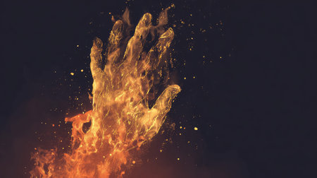 Burning hand creating fire power and heat