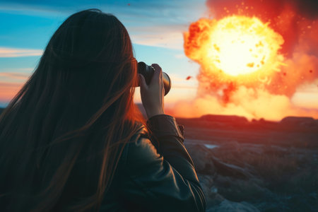 Witnessing Power: Woman Gazes at Distant Nuclear Explosion