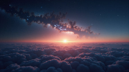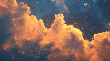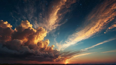 AI Generated. Stunning Orange Sunset Cloudscape with Stars