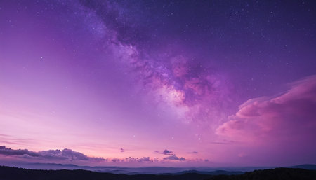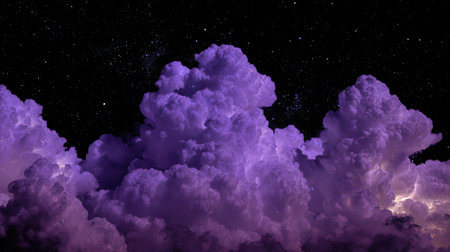 AI Generated. The serene beauty of the night sky with its countless stars shrouded by soft purple clouds