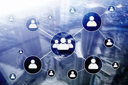 People network connection icons on blurred city connection. Network work connections concept.