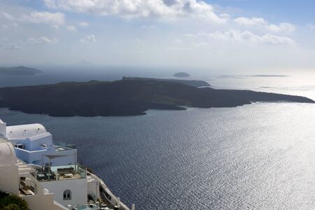 Sea and Volcano view from Fira the capital of Santorini island in Greece