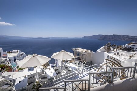 White architecture on Santorini island, Greece. Summer landscape, sea view. Famous travel destination