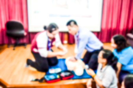 The training of basic life support resuscitation and CPR knowledge to use in an emergency situation. Abstract blur zoom.