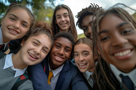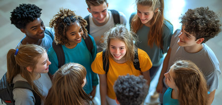 Group of Diverse High School Friends Sharing a Joyful Moment Together