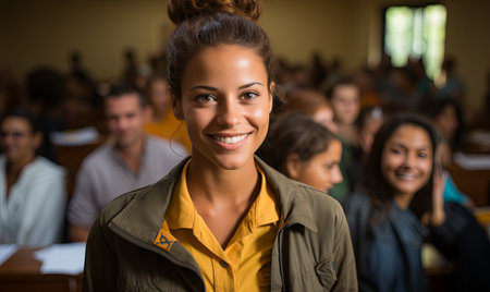 A heartwarming classroom portrait captures the joy of learning as diverse students beam with smiles The vibrant image embodies the back-to-school spirit, showcasing educational success and the unifying power of a shared experience Together, they represent the vibrant future of education AI Generative