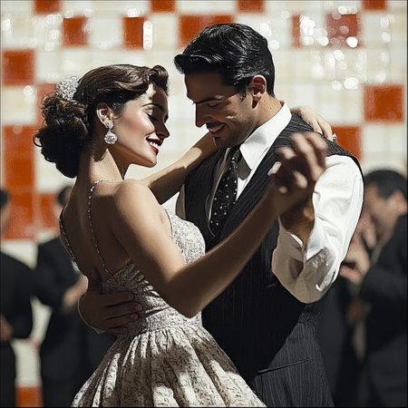 A pair of grandparents dancing in a couple, created with the help of generative AI technology.