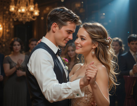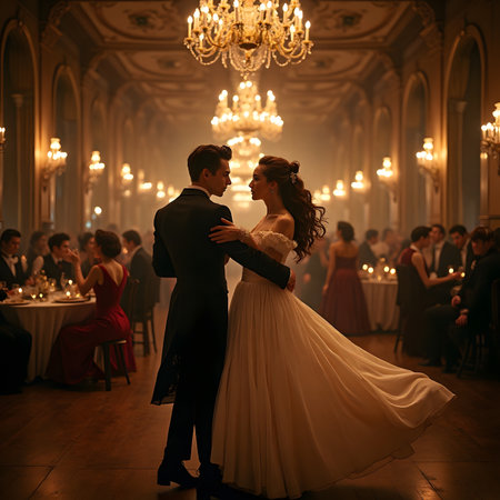 Intimate Dance in a Luxurious Ballroom Setting