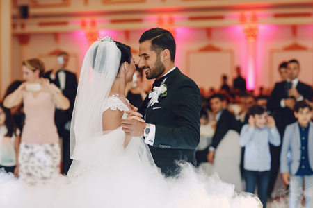 first wedding dance of a young couple in the restaurant