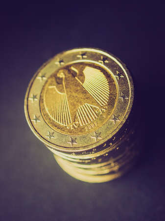 Vintage looking Euro cent coins currency of the European Union, two cents