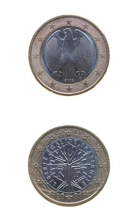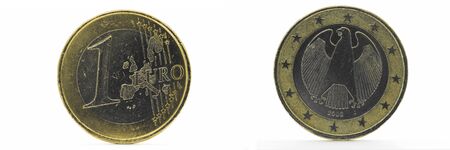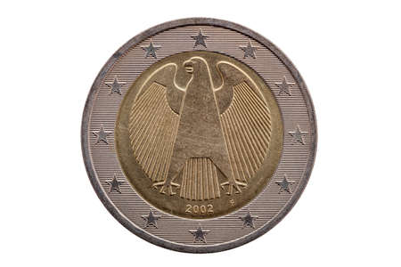 Reverse side of a Two Euro coin of Germany dated 2002 which shows the German eagle cut out and isolated on a white background
