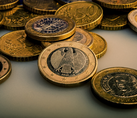 photographed close-up coins of the European Union - the euro. Little depth of field