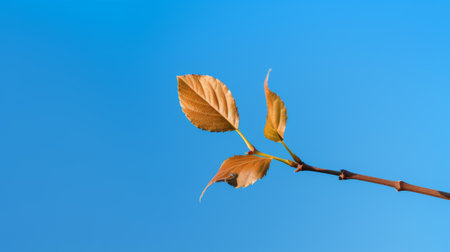 Branch with delicate leaves illuminated by soft light during autumn in a tranquil outdoor setting