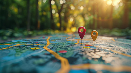 High-quality photo of a map with colorful pins marking must-visit destinations and route planning