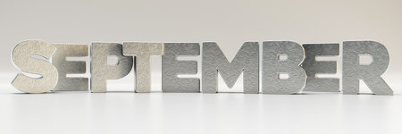September calendar month - letters in metal, 3d render illustration
