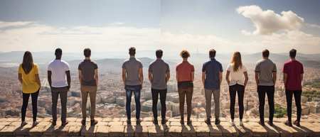 A captivating image showcasing a group of diverse young adults standing together, representing a mix of different ethnic backgrounds, emphasizing unity and modern diversity.