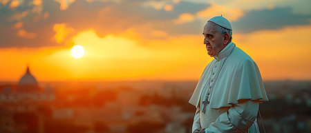 illustration of Pope silhouette at sunset