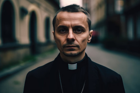 Portrait of a catholic priest in the streets of the city