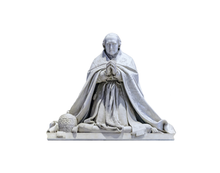 Front view shot pope marble sculpture isolated on white background
