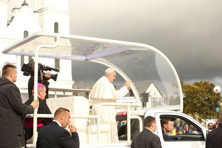 24.09.2018. AGLONA, LATVIA. His Holiness Pope Francis driving at Pope Mobile, before Holy Mass at Aglona Basilica