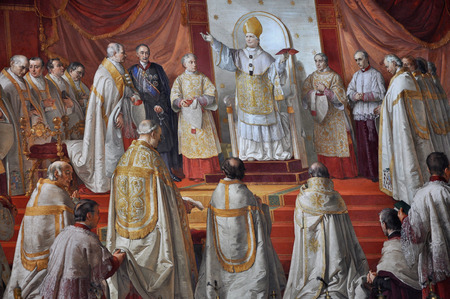 Rome-Italy-10-24-2015. Holy Pontifical Mass in an ancient rite at the Saint Peter's Chair, Mass in Latin, in the Basilica of Saint Peter's in the Vatican, pilgrimage summorum pontificum