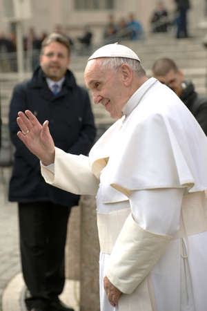 Vatican, Rome / Italy; 01/27/2016: Pope Francis at the end of the papal audience says goodbye