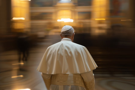 The pope gracefully walking through the church a symbol of faith, reverence, and hope illuminated