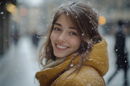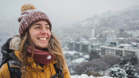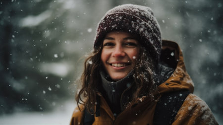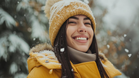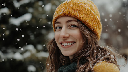 Radiant Young Woman Relishing Winter's Beauty Outdoors