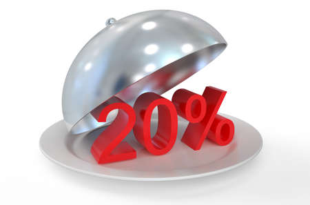 A bold, vibrant red sign displaying a 20 percent discount captures attention. This enticing symbol of savings is set against a clean white background, perfect for attracting shoppers.
