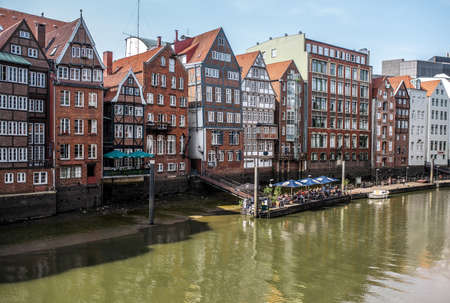 2018-07-20 Hamburg, Germany: historic buildings on bank of Nikolaifleet canal on clear day