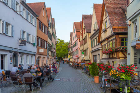 Tubingen, Germany, September 19, 2020: Colorful street in the old town of Tubingen, Germany