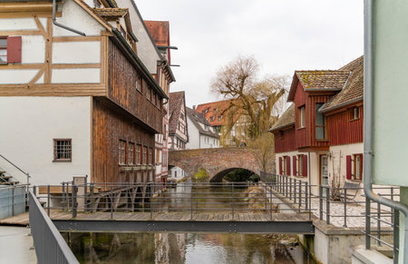 Gothic half-timbered houses - picturesque view in the Schwabisch Hall city Old town, Germany
