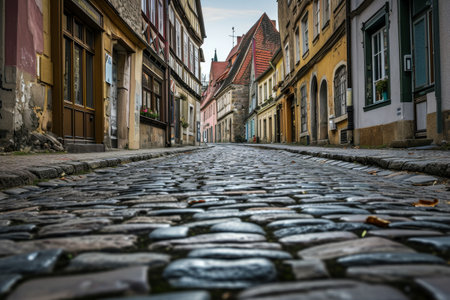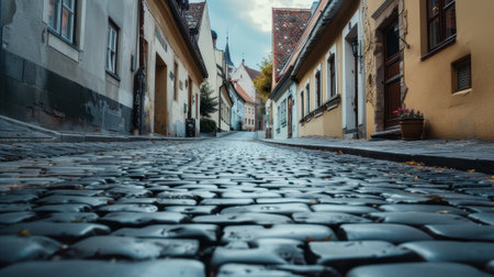Charming Cobblestone Street: A Serene Pathway Amongst Historic Residential Masonry Homes