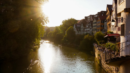 Tübingen, Old city view by the Neckar river at the sunset, Germany