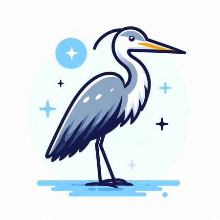 Cartoon blue heron on a white background. Vector illustration.