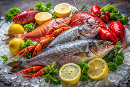 Abundance of fresh seafood, healthy gourmet meal generated by artificial intelligence