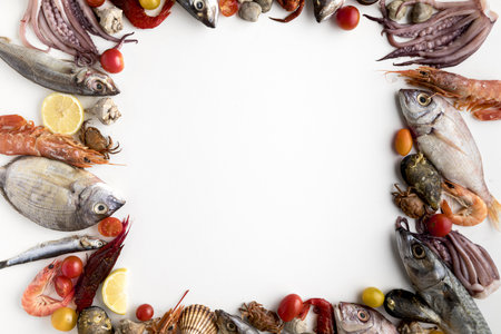 top view assortment seafood frame. Resolution and high quality beautiful photo
