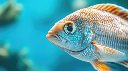 Close-up of a majestic sea fish in crystal-clear water, highlighting its intricate scales and vivid colors