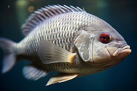 A Stunning Close-up of Nile Tilapia, Oreochromis Niloticus, Majestically Captured in an Aquarium