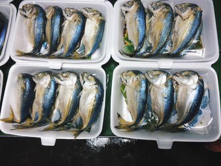 Short-bodied Mackerel (Rastrelliger brachysoma) in package ready for sell at local market.
