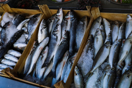 Variety of fresh fish on display at fish market in Istanbul, Turkey