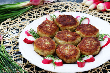 Fish cakes, patties or cutlets on a plate
