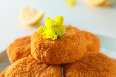 Fresh fried fish cakes served with lemon