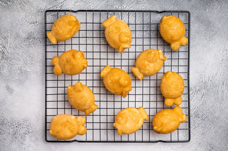 Korean pancake Bungeoppang, Fish shaped Waffle with sweet red bean filling. white background. top view.
