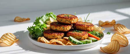 AI Generated. Delicious Crispy Fish Cakes with Chips and Vegetables