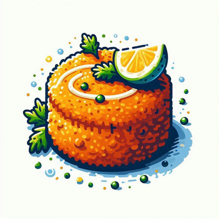 Illustration of a delicious orange cake with lime and parsley.