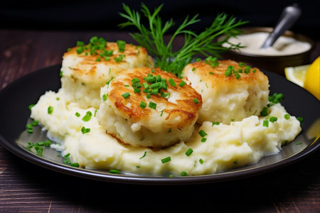 Deliciously Flavored Homemade Fish Cakes with Creamy Mashed Potato --AR 3:2