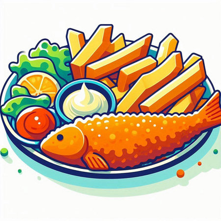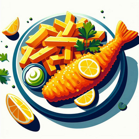 Fresh seafood and fries, a gourmet lunch generated by artificial intelligence