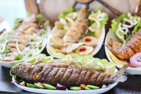Fish Grill Seafood Fasting Mediterranean Cuisine Restaurant Menu Gourmet Concept