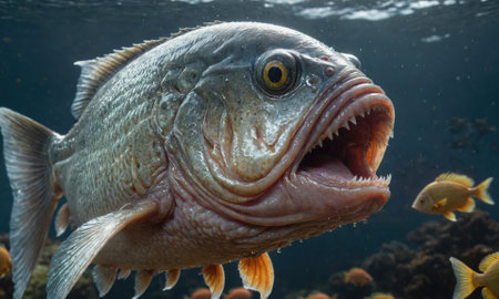 AI Generated. Translucent Fish in Surprised Expression Underwater